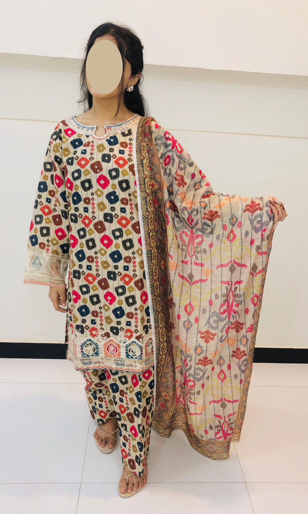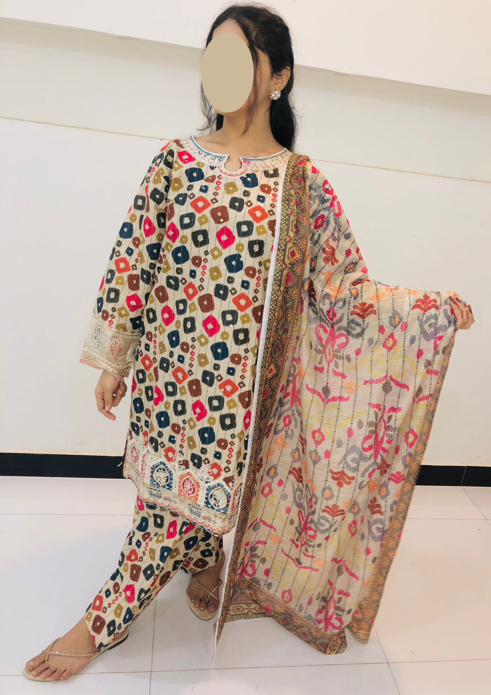 Ye exclusive 3-piece suit bana hai soft Cotri fabric mein, jo aapko deta hai comfort aur classy look dono ek saath.