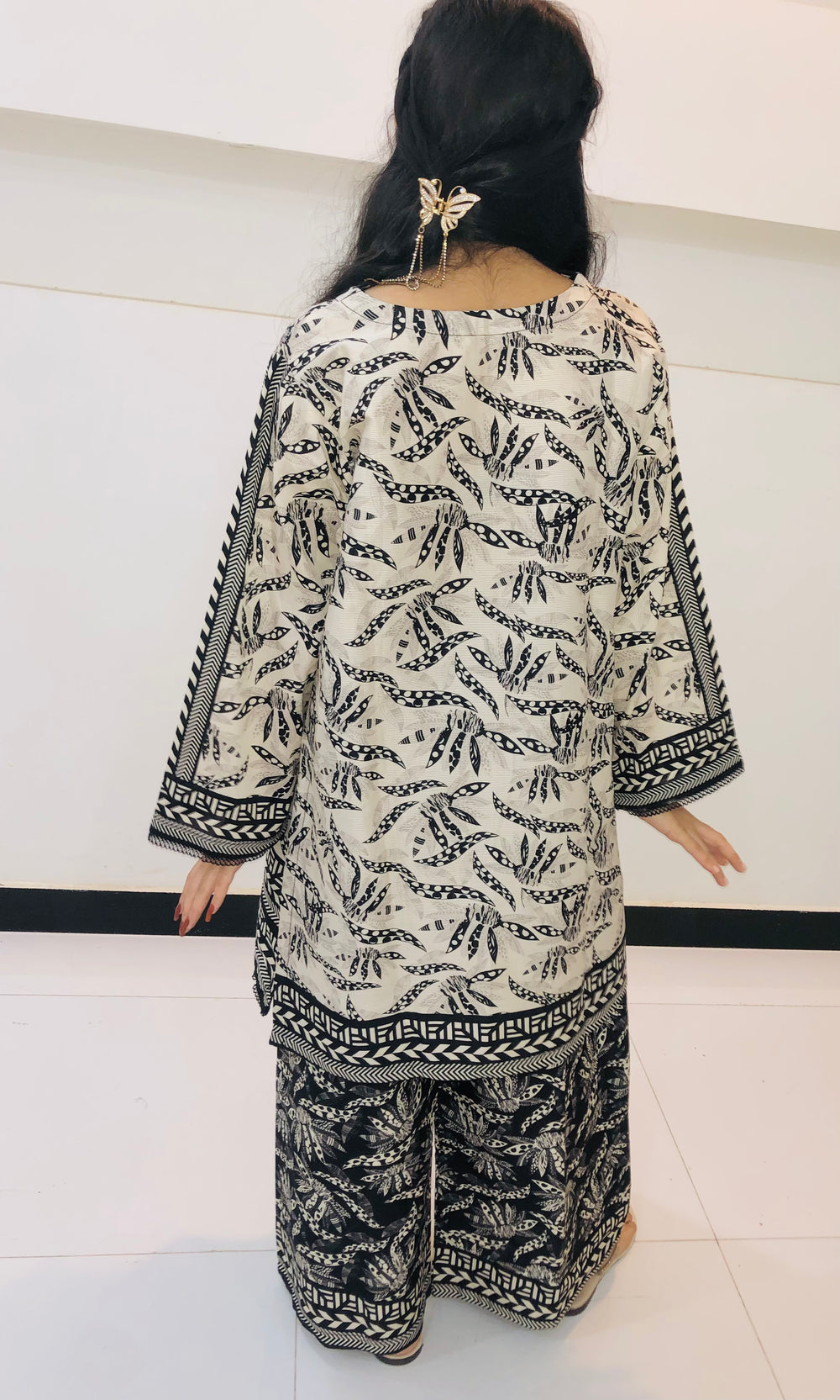This beautifully designed outfit features a richly detailed shirt paired with soft wide-leg trousers — blending traditional charm with a modern, sophisticated touch. Its premium stitching and graceful color palette make it perfect for casual gatherings or semi-formal events.
